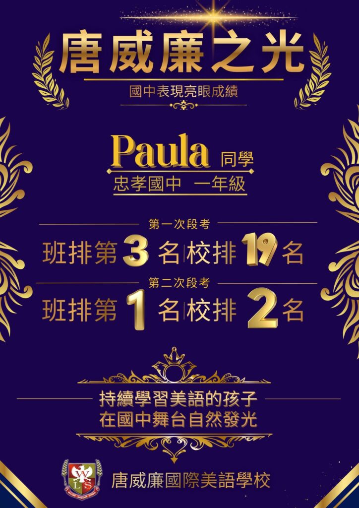謝謝家長一路以來對唐威廉的信任與支持